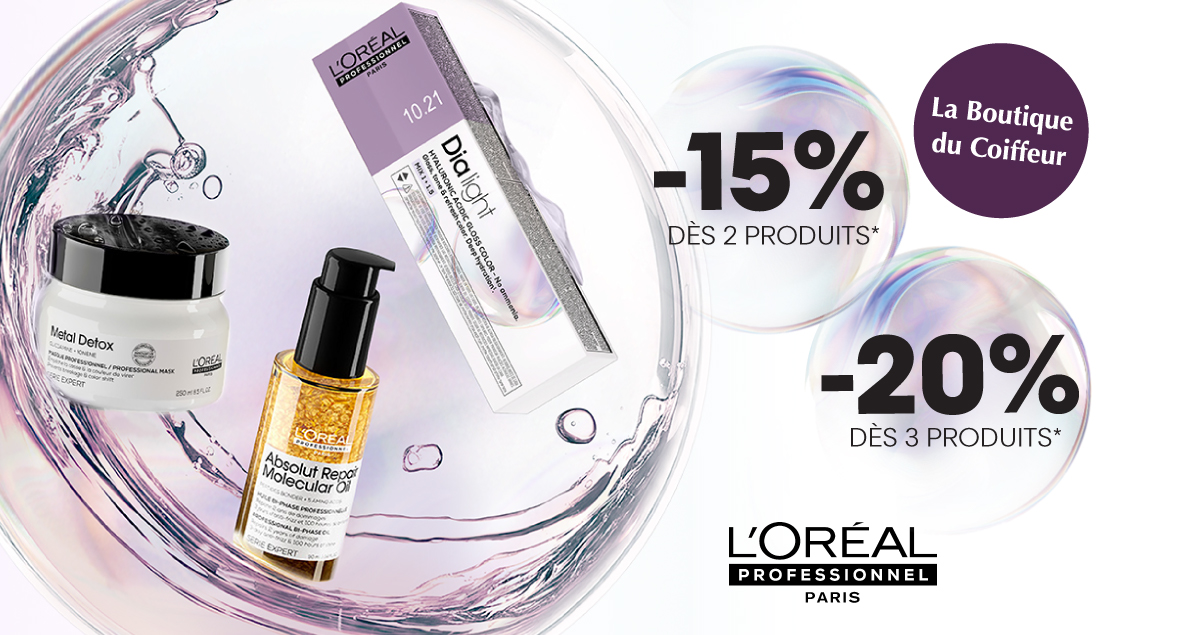 En ce moment -15% dès 2 produits achetés et -20% dès 3 produits achetés sur les gammes Series Expert et Dialight de L’Oréal Professionnel ! C’est le moment d’en profiter !